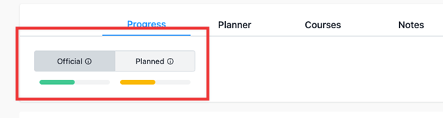 - The planned audit shows any programs that the student has officially or unofficially added to their plan within Stellic. It will also display any courses that the student has completed, registered, or added to their planner for future terms.